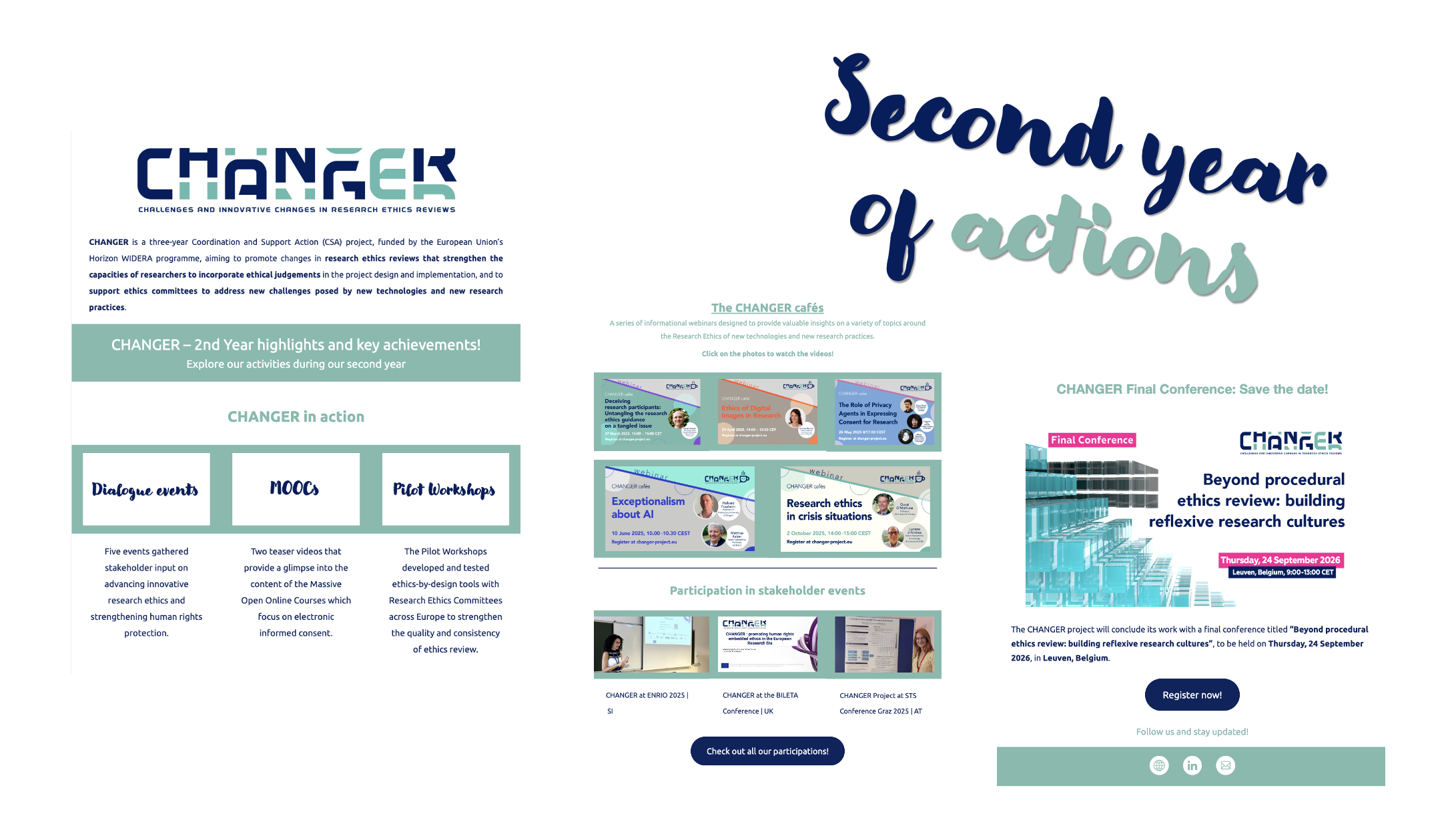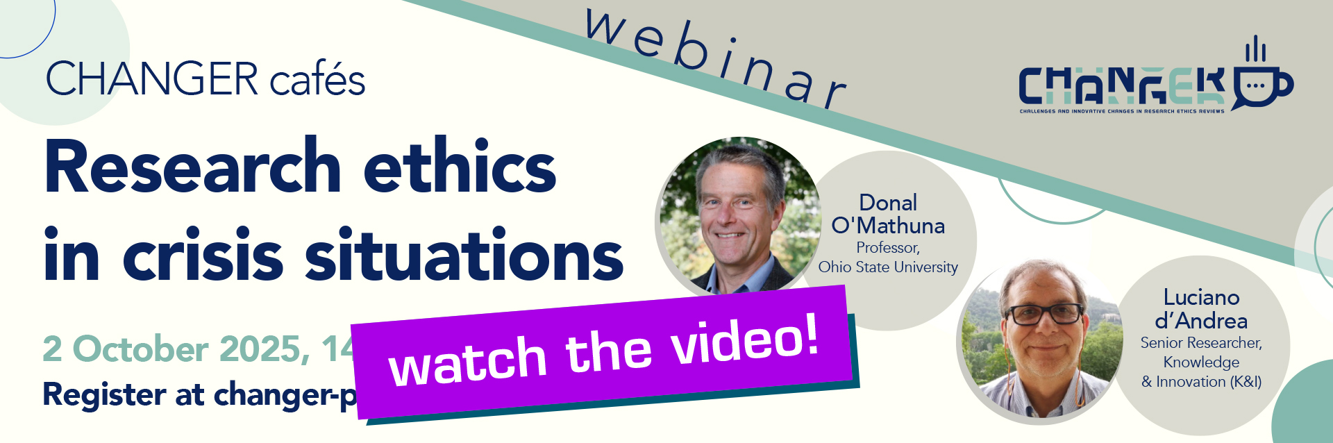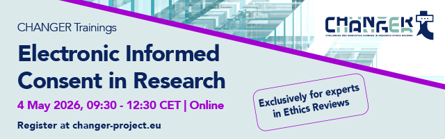 CHAllenges and innovative chaNGes in research Ethics Reviews (CHANGER) is a three-year Coordination and Support Action (CSA) project, funded by the European Union’s Horizon WIDERA programme aiming to promote changes in research ethics reviews by strengthening the capacities of researchers to incorporate ethical judgements in the project design and implementation, and by supporting capacity building of Research Ethics Committees (RECs) to address new challenges posed by new technologies and new research practices.