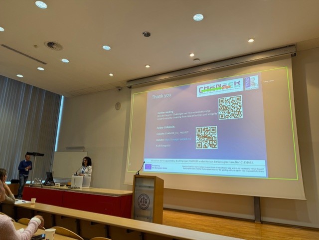 On September 24, in the Main Hall of Enrio2025, V.Mollaki delivered also an oral presentation on Promoting research security through research ethics and integrity practices. The talk highlighted insights from the 1st Policy Brief of the CHANGER project titled Challenges and recommendations for research security: Learning from research ethics and integrity (available here).